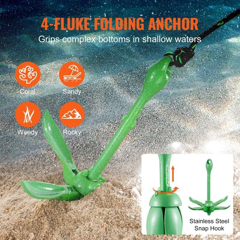 3.Designed for shallow waters, it offers excellent horizontal resistance on various terrains, from sandy to rocky bottoms, ensuring secure anchoring for small boats.